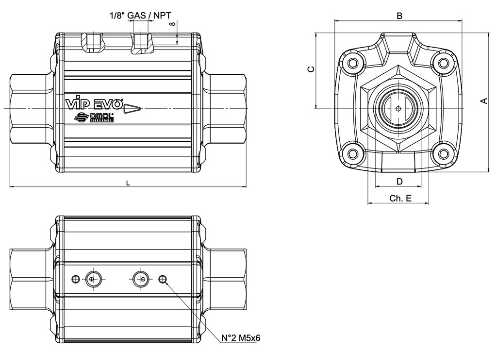 • Pneumatic connections:1/8” ISO 228 any orientation acceptable 360°.