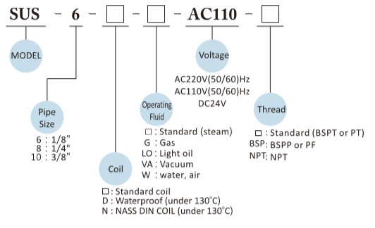 Solenoid Valve-Normally Closed Type Product ID: SUS-6~10